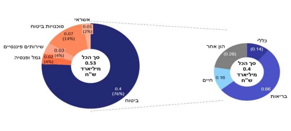 תחום ההשקעות והמימון כולל דמי ניהול ועמלות גרם לחברה הכנסות נטו שליליות, בעוד תחום הביטוח תרם בעצם את כל ההכנסות.